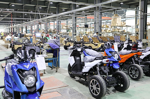 振华工贸现有4条总装生产线、4条喷漆生产线、各类生产设备超过400套,检测设备超过80套,全部设备都属于行业先进设备。年生产能力,休闲乐竞(中国)10万辆、电动搬运车5万辆,房车用热水器、燃气灶30万套,乐竞(中国)车架6万套,各类乐竞(中国)配件30万件。
